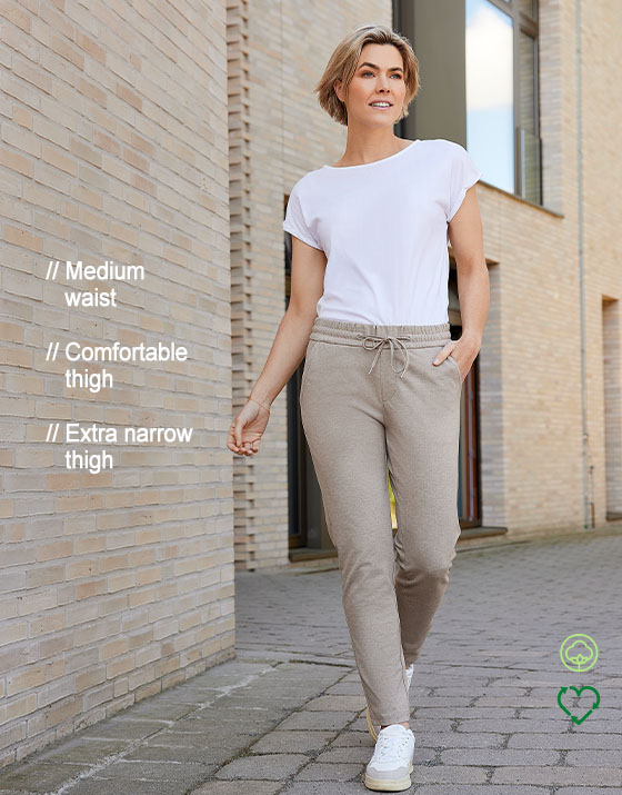 The STOOKER style, BERLIN, is casual, dynamic and extremely comfortable. Inspired by sports fashion the fitting perfectly disguises problem zones. The adjustable elastic waistband and the use of structured techno-stretch material means they are extremely comfortable to wear. Fashion for every day!